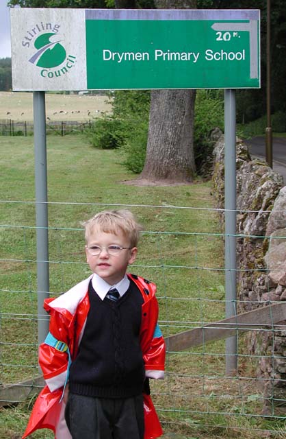 I started school in August. Here is a picture of me on my first day at Drymen primary.